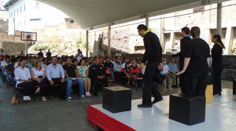 La obra teatral se llevó a cabo en la cancha deportiva de la escuela preparatoria No. 4 con la participación de más de 250 jóvenes de las secundarias, del INEA, ’Vicente Guerrero’ y ’Tlachco’, contando con la presencia de el Regidor Fernando Estrada Díaz representante del presidente Omar Jalil Flores Majul, Julieta Ocampo directora de INEA, Luis Armando Arteaga Jacobo director de la Prepa No. 4 y del oficial Carlos González Lizárraga titular de la Estación de la Policía Federal en Taxco.