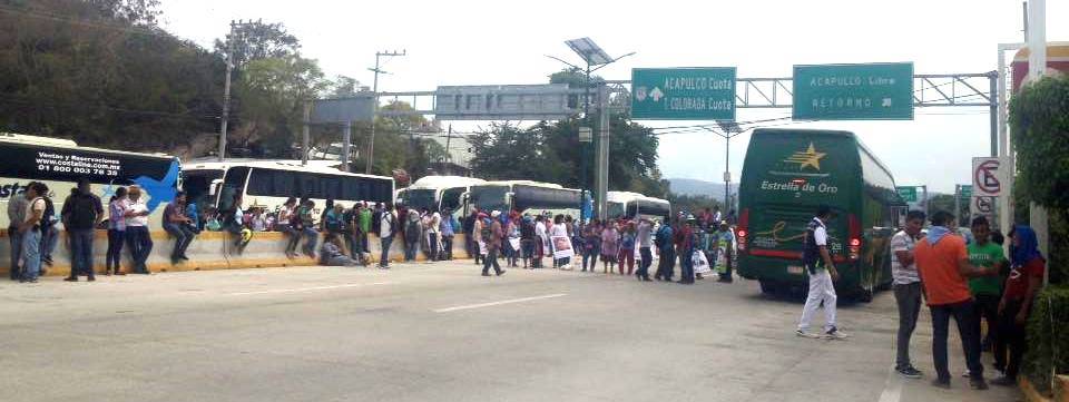 Dos de los cuatro carriles de la Autopista del Sol se encuentran cerrados por el bloqueo que realizan estudiantes de Ayotzinapa y padres de los 43 desaparecidos en septiembre del año pasado en Iguala, se quejan de que el Secretario de Gobernación Miguel Angel Osorio Chong les pospuso la reunión que tenían programada para este jueves en la ciudad de México.