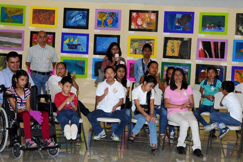 Chilpancingo, Guerrero.- Caras y Gestos en vivos colores, con diferentes expresiones y matices particulares, fueron pintados por niñas y niños con autismo y otras discapacidades, provenientes de distintas colonias de la ciudad, que hoy comparten con los capitalinos en la exhibición montada en la Sala de la República del Complejo Cultural Guerrero.