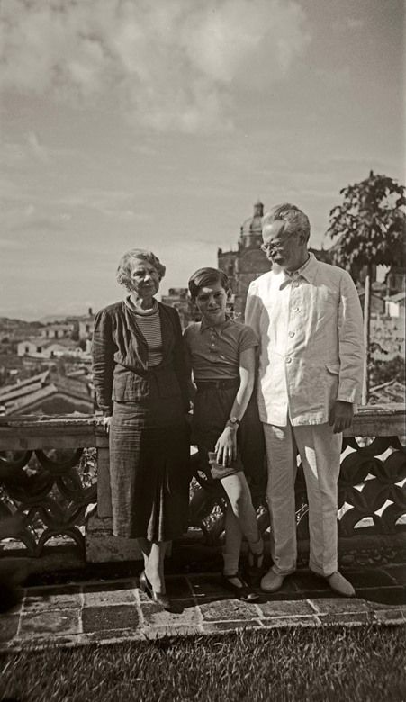 Natalia Sedova, Seva Volkov y Léon Trotsky, en Taxco, 1939.